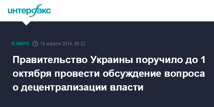Правительство Украины поручило до 1 октября провести обсуждение вопроса о децентрализации власти