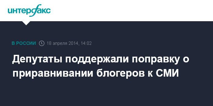 Москва. 18 апреля. INTERFAX.RU - Госдума при рассмотрении во втором чтении законопроекта из "антитеррористического пакета", одобрила поправку, приравнивающую блогеров к СМИ.