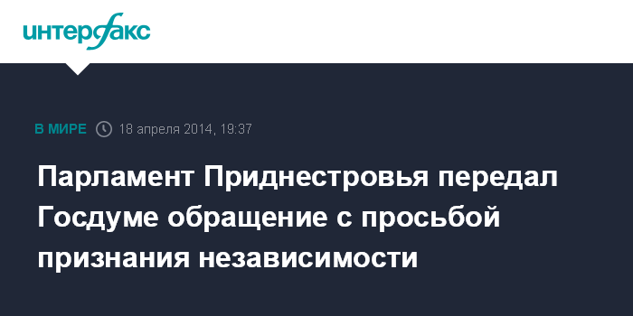 В среду депутаты Верховного совета Приднестровья приняли обращение к ООН, ОБСЕ и властям России с просьбой о признании независимости Приднестровской молдавской республики.