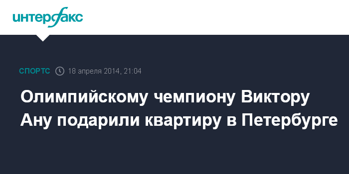 Москва. 18 апреля. INTERFAX.RU - Шестикратному олимпийскому чемпиону по шорт-треку Виктору Ану в Санкт-Петербурге вручили ключи от квартиры в небоскребе.