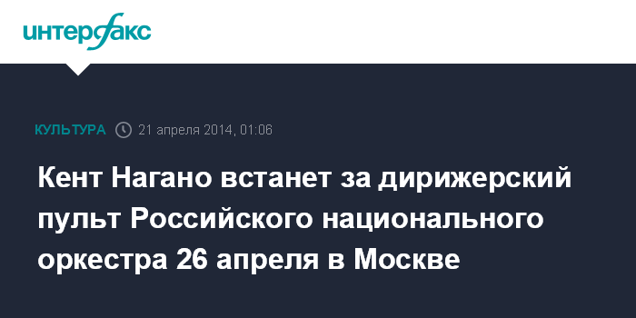 Москва. 21 апреля. INTERFAX.RU - Прославленный американский дирижер Кент Нагано выступит 26 апреля в Москве вместе с Российским национальным оркестром, художественным руководителем которого является Михаил Плетнев.