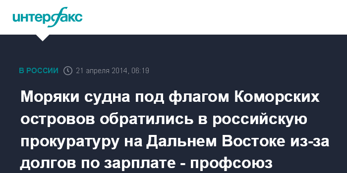 Моряки судна под флагом Коморских островов обратились в российскую прокуратуру на Дальнем Востоке из-за долгов по зарплате - профсоюз
