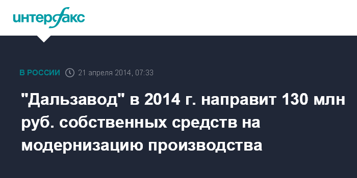 "Дальзавод" в 2014 г. направит 130 млн руб. собственных средств на модернизацию производства
