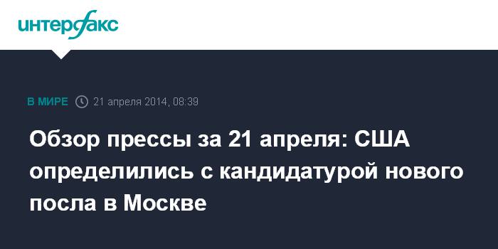 Обзор прессы за 21 апреля: США определились с кандидатурой нового посла в Москве