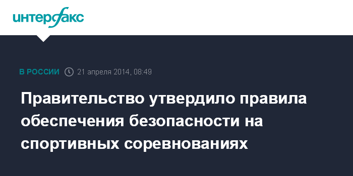 Москва. 21 апреля. INTERFAX.RU - Премьер-министр РФ Дмитрий Медведев подписал постановление правительства об утверждении Правил обеспечения безопасности при проведении официальных спортивных соревнований, сообщается в понедельник на сайте кабинета министров.