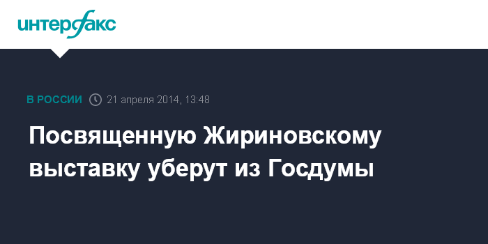 Москва. 21 апреля. INTERFAX.RU - Совет Думы в понедельник рекомендовал демонтировать выставку, развернутую в холле второго этажа Госдумы, посвященную Владимиру Жириновскому в связи с его днем рождения.