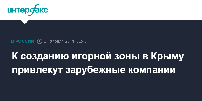 Москва. 21 апреля. INTERFAX.RU - Принять участие в создании будущей игорной зоны в Крыму готовы не только российские компании, но и зарубежные, заявил врио главы Республики Крым Сергей Аксенов.