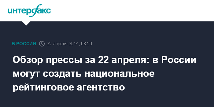 Обзор прессы за 22 апреля: в России могут создать национальное рейтинговое агентство