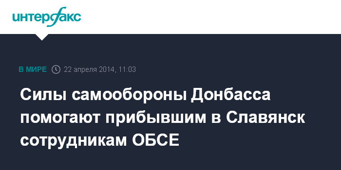 Москва. 22 апреля. INTERFAX.RU - Так называемые силы самообороны Донбасса сотрудничают с наблюдателями ОБСЕ в Славянске, но не надеются на объективные результаты их работы, заявил во вторник "Интерфаксу" по телефону один из их руководителей Мирослав Руденко.