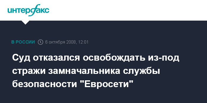 Суд отказался освобождать из-под стражи замначальника службы безопасности "Евросети"