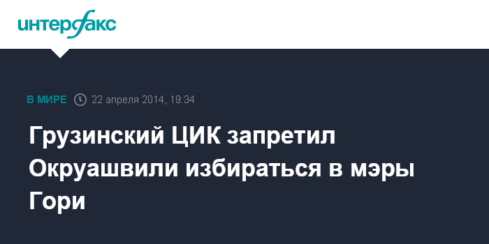 Москва. 22 апреля. INTERFAX.RU - Центральная избирательная комиссия Грузии признала недействительным решение окружной избирательной комиссии города Гори о регистрации экс-министра обороны Грузии Ираклия Окруашвили кандидатом в мэры этого города.