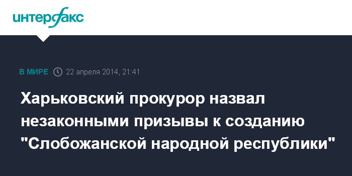 Как сообщалось, 20 апреля на митинге на площади Свободы в Харькове представители общественной организации "Слобожанщина" призывали собравшихся "провозгласить Харьков и Харьковскую область Слобожанской народной республикой со столицей в Харькове", а также организовать ее "политическое, экономическое и военное взаимодействие с другими народными республиками и предложить всем народным республикам Украины объединиться в Юго-восточную федеративную автономию".