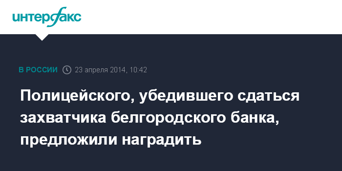 Полицейского, убедившего сдаться захватчика белгородского банка, предложили наградить