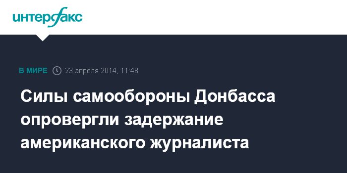 Москва. 23 апреля. INTERFAX.RU - Силы самообороны Донбасса не подтверждают информацию о задержании американского журналиста Саймона Островского.