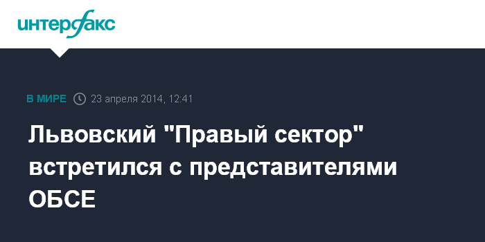 Москва. 23 апреля. INTERFAX.RU - Группа мониторинговой миссии ОБСЕ встретилась с руководством "Правового сектора" во Львове.