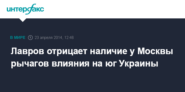 Москва. 23 апреля. INTERFAX.RU - У Москвы нет рычагов влияния на события, происходящие в юго-восточных районах Украины, заявил глава МИД РФ Сергей Лавров.