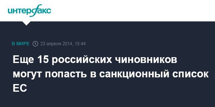Москва. 23 апреля. INTERFAX.RU - Европейский союз готов ввести визовые и финансовые санкции в отношении еще 15 российских официальных лиц в случае провала женевских договоренностей по Украине, пишет The Wall Street Journal.