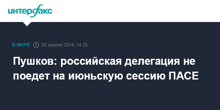 Москва. 24 апреля. INTERFAX.RU - Глава комитета Госдумы по международным делам Алексей Пушков считает, что Россия, по всей видимости, воздержится от участия в мероприятия ПАСЕ до возвращения российской делегации всех полномочий.