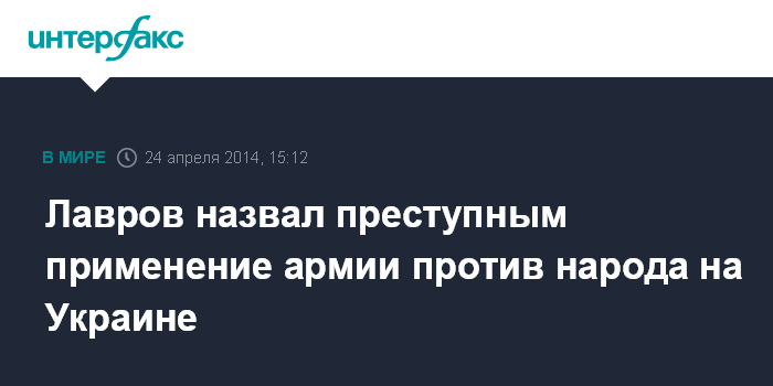 Москва. 24 апреля. INTERFAX.RU - Первые шаги по деэскалации конфликта на Украине должны сделать в Киеве, применять армию против населения юго-востока - преступление, заявил глава МИД РФ Сергей Лавров.