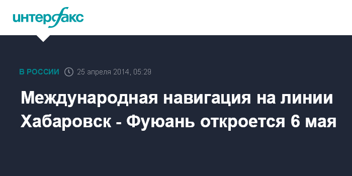 Международная навигация на линии Хабаровск - Фуюань откроется 6 мая