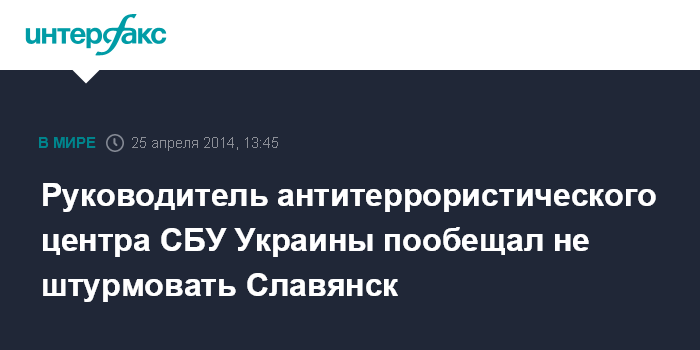 Руководитель антитеррористического центра СБУ Украины пообещал не штурмовать Славянск