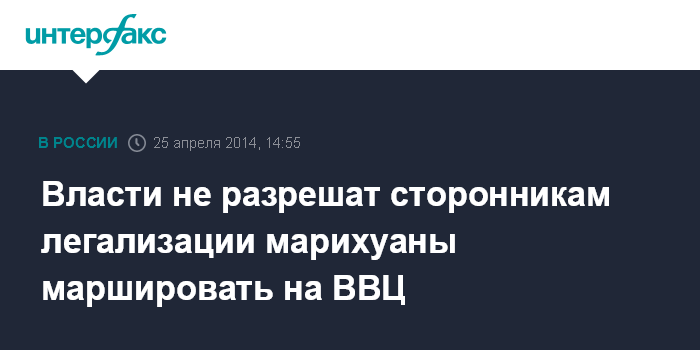 Москва. 25 апреля. INTERFAX.RU - Власти Москвы запретили проведение 3 мая у входа на ВВЦ марша в поддержку легализации марихуаны. "Мероприятие проведено не будет", - сообщил "Интерфаксу" в пятницу глава департамента региональной безопасности и противодействия коррупции Алексей Майоров.