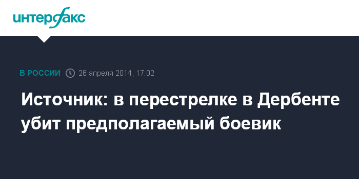 Москва. 26 апреля. INTERFAX.RU - Подозреваемый в участии в НВФ убит в субботу при оказании вооруженного сопротивления в Дербенте, сообщил агентству "Интерфакс-Юг" источник в правоохранительных органах Дагестана.