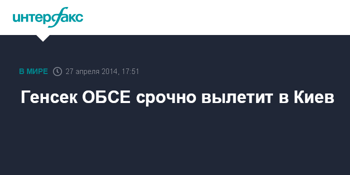 Москва. 27 апреля. INTERFAX.RU - Генеральный секретарь ОБСЕ Ламберто Заньер прибудет в Киев в воскресенье вечером, сообщил исполняющий обязанности министра иностранных дел Украины Андрей Дещица. "Ситуация с освобождением наблюдателей ОБСЕ остается сложной. Возвращаюсь в Киев. Вечером в Киев прилетает и генсек ОБСЕ Ламберто Заньер", - написал и.о.главы МИД в твиттере.