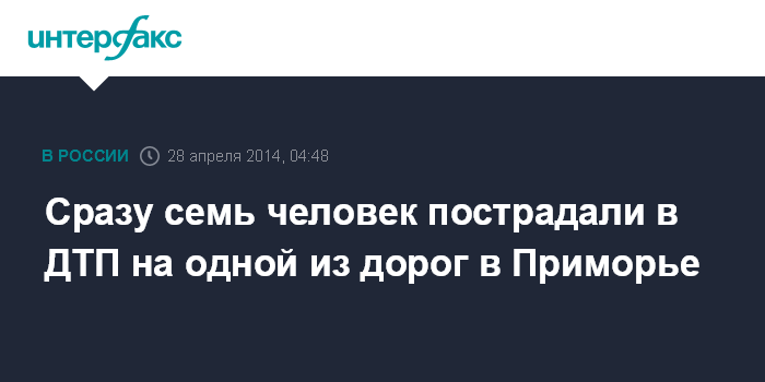 Владивосток. 28 апреля. INTERFAX.RU - Сотрудники полиции Приморья устанавливают обстоятельства ДТП, в котором пострадали семь человек, пятеро из них госпитализированы, сообщает УГИБДД по региону.