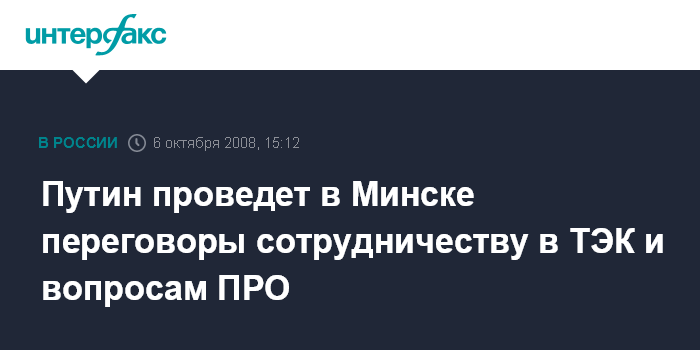 Путин проведет в Минске переговоры сотрудничеству в ТЭК и вопросам ПРО