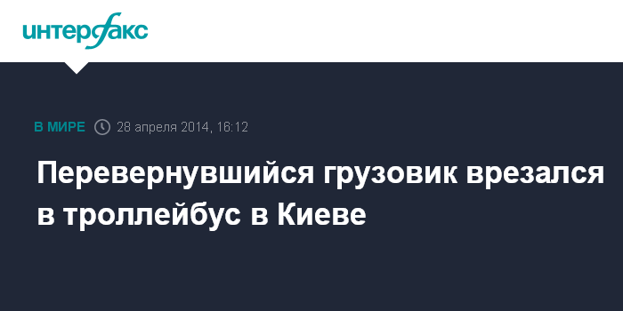Москва. 28 апреля. INTERFAX.RU - В результате ДТП с участием грузового автомобиля Ford и троллейбуса в Киеве в понедельник травмы получили 18 человек - 7 взрослых и 11 подростков,