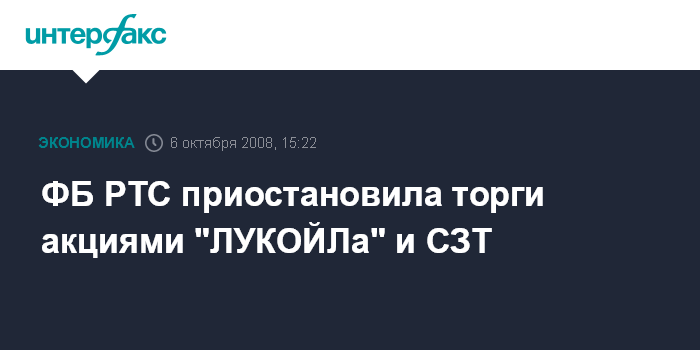 ФБ РТС приостановила торги акциями "ЛУКОЙЛа" и СЗТ
