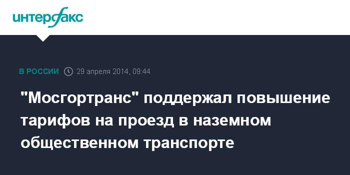 Москва. 29 апреля. INTERFAX.RU - "Мосгортранс" поддерживает повышение тарифов на проезд в наземном общественном транспорте, заявил директор ГУПа Евгений Михайлов.