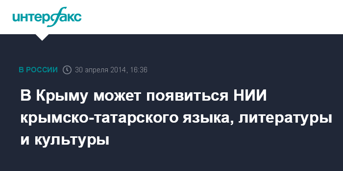 Москва. 30 апреля. INTERFAX.RU - Научно-исследовательский институт крымско-татарской литературы, языка и культуры может быть создан в Крыму на базе научного центра Крымского государственного инженерно-педагогического университета (КГИПУ), сообщил и.о. главы республики Сергей Аксенов.
