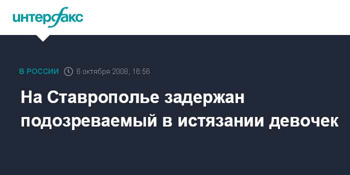 Москва. 6 октября. INTERFAX.RU - Петровский межрайонный следственный отдел следственного управления СКП РФ по Ставропольскому краю возбудил уголовное дело в отношении жителя города Светлограда, подозреваемого в истязании малолетних девочек, одна из которых скончалась.
