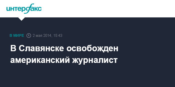 Москва. 2 мая. INTERFAX.RU - В Славянске освобожден ранее захваченный американский журналист издания Buzzfeed Майк Джиглио и его переводчица, сообщает издание "Новости Донбасса" на своей странице в твиттере.