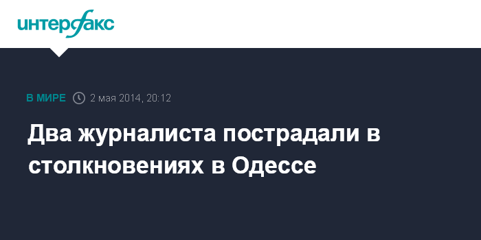 Одесса. 2 мая. INTERFAX.RU - Минимум два журналиста пострадали в ходе массовых беспорядков в пятницу в Одессе, передает корреспондент агентства "Интерфакс-Украина".