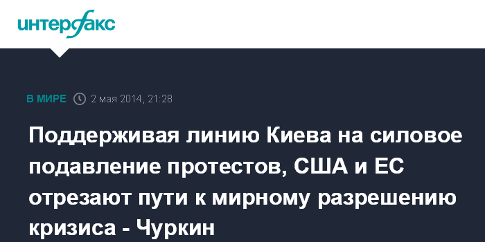 Поддерживая линию Киева на силовое подавление протестов, США и ЕС отрезают пути к мирному разрешению кризиса - Чуркин