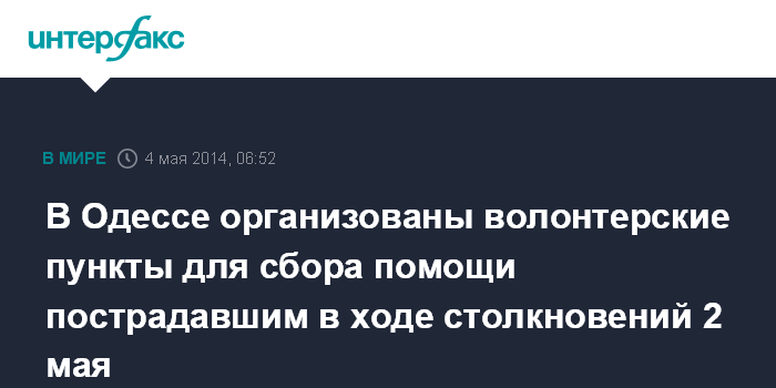 В Одессе организованы волонтерские пункты для сбора помощи пострадавшим в ходе столкновений 2 мая