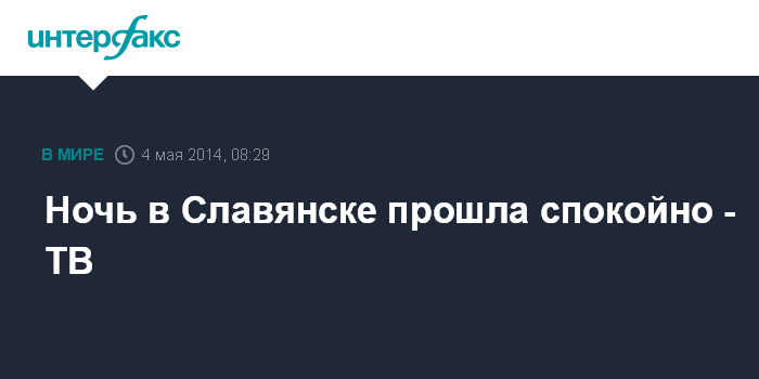 Москва. 4 мая. ИНТЕРФАКС - Впервые за долгое время в Славянске ночью не было слышно выстрелов в центре города и на окраинах, сообщает телеканал "Россия-24".