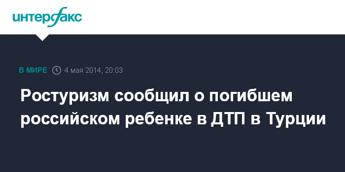 Ростуризм сообщил о погибшем российском ребенке в ДТП в Турции