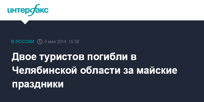 Москва. 5 мая. INTERFAX.RU - С 1 по 3 мая в Челябинской области погибли двое туристов. Следственные органы Челябинской области устанавливают обстоятельства их смерти, сообщило областное следственное управление СК России в понедельник.