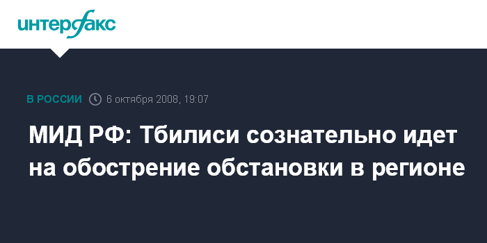 МИД РФ: Тбилиси сознательно идет на обострение обстановки в регионе