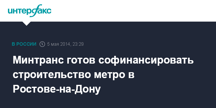Москва. 5 мая. INTERFAX.RU - Министр транспорта РФ Максим Соколов подтвердил готовность Минтранса оказать поддержку при строительстве метрополитена в Ростове-на-Дону.