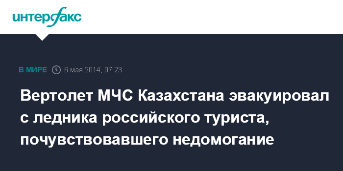 Москва. 6 мая. INTERFAX.RU - Казахстанские спасатели доставили в больницу туриста из Новосибирска, которому стало плохо в горах Джунгарского Алатау (в Алматинской области Казахстана, на юго-востоке).