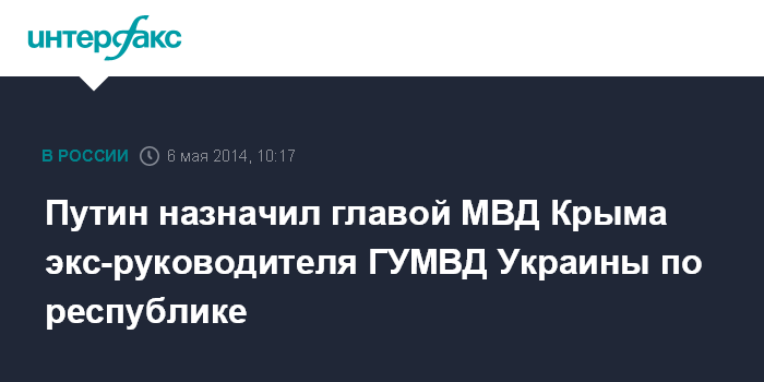 Путин назначил главой МВД Крыма экс-руководителя ГУМВД Украины по республике
