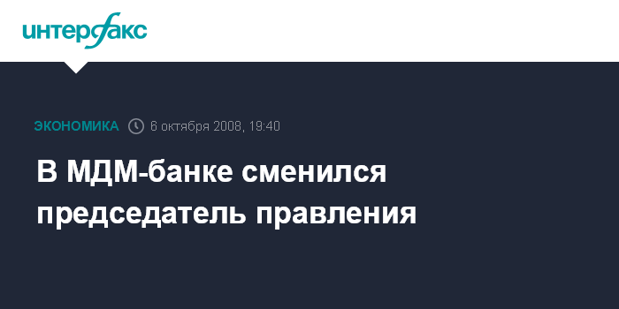 Москва. 6 октября. INTERFAX.RU - Новым председателем правления МДМ-банка (РТС: MBWB) станет бывший глава "Дельтакредита" Игорь Кузин, говорится в сообщении банка.