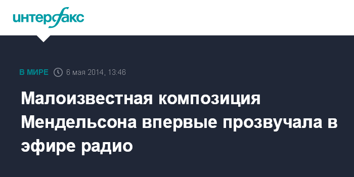 Москва. 6 мая. INTERFAX.RU - Композиция, написанная Феликсом Мендельсоном в 1842 году, прозвучала впервые за 140 лет для широкой аудитории в эфире радио BBC.