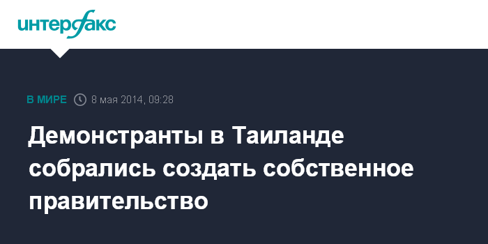 Москва. 8 мая. INTERFAX.RU - Участники акций протеста в столице Таиланда предупредили, что собираются самостоятельно заняться формированием нового правительства страны, передают в четверг западные СМИ.