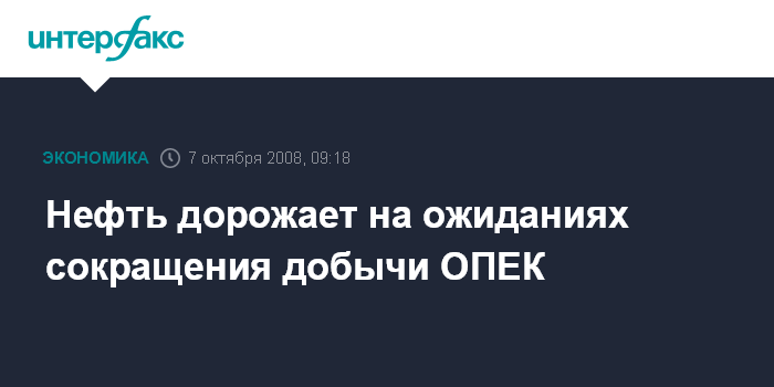 Москва. 7 октября. INTERFAX.RU - Нефть дорожает после "избыточного падения" в понедельник на ожиданиях сокращения добычи ОПЕК, которое может быть одобрено на конференции картеля в декабре, сообщило агентство Bloomberg.